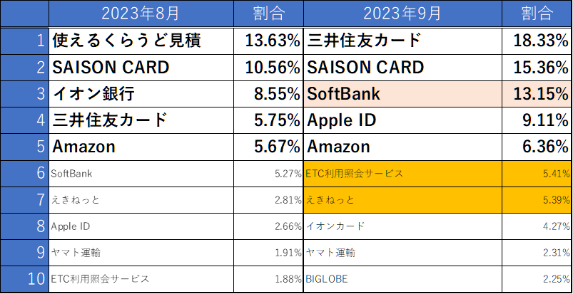9月度は「三井住友カード」が1位になりました。毎月一定の報告がされており、引き続き注意が必要です。