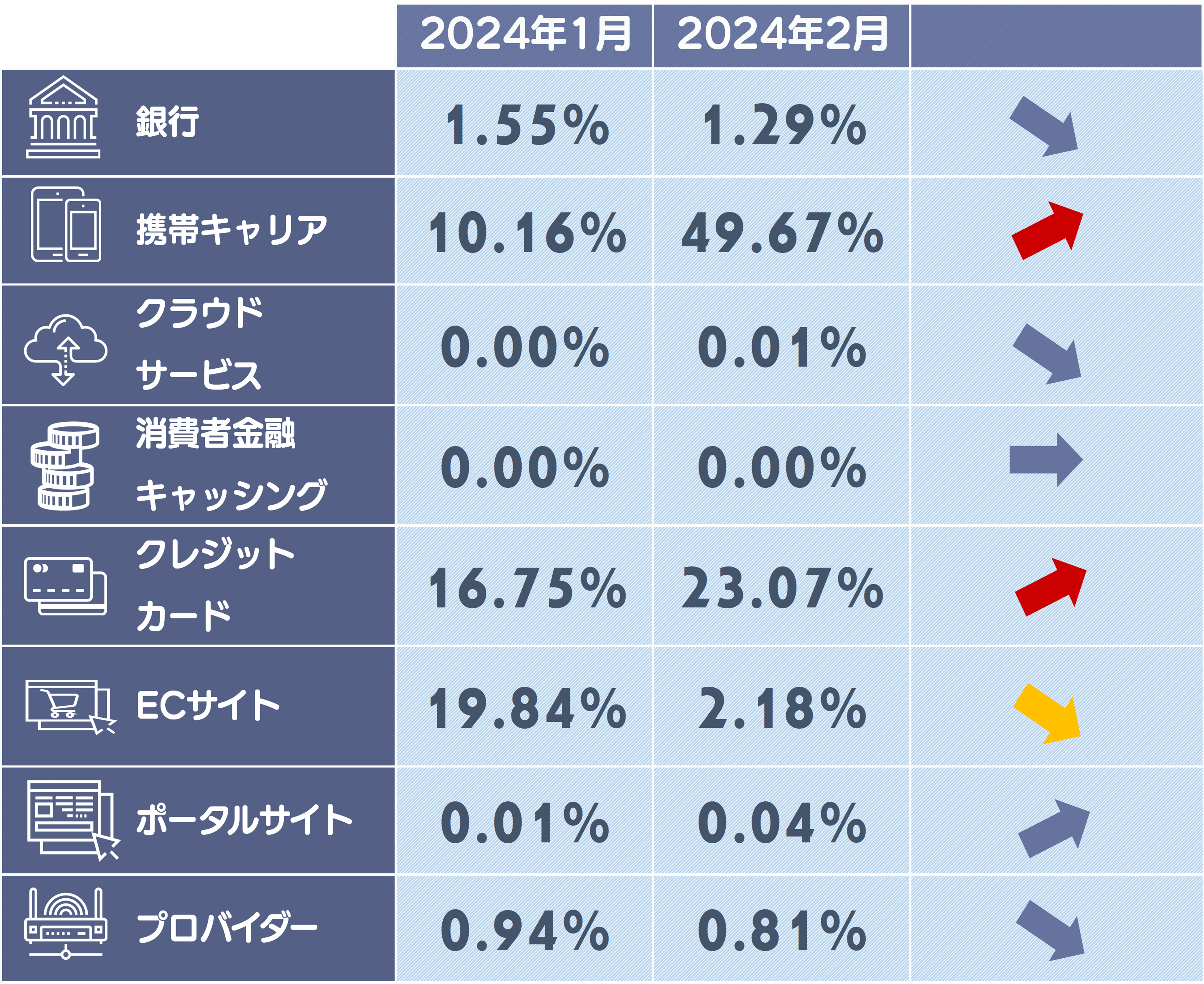 ※5ポイント以上上昇したカテゴリは赤色の矢印になります。