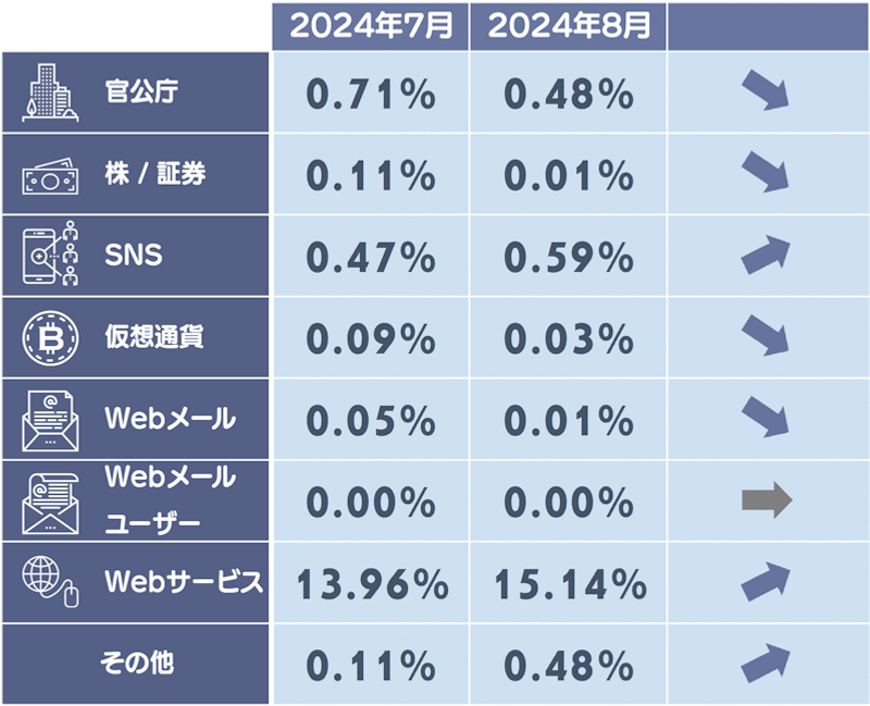 インターネット詐欺リポートは詐欺ウォール®の検知エンジンを強化するために調査・収集しているインターネット詐欺サイトを分析したレポートです。2024年8月度のインターネット詐欺リポートでは、クレジットカードのフィッシングサイトが増加している点を取り上げます。