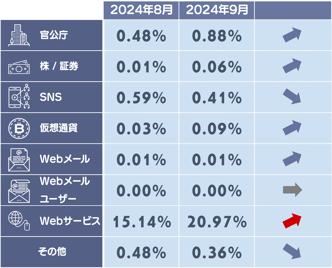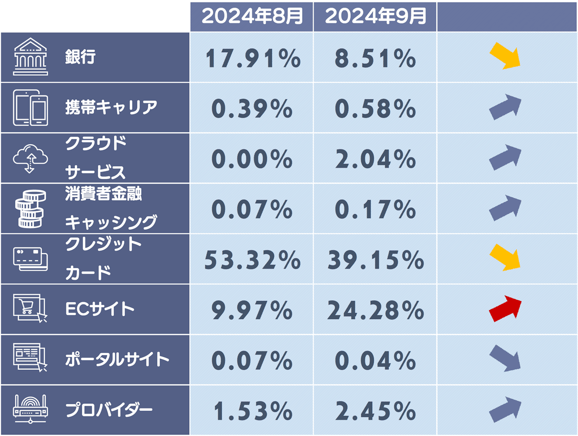 9月度は前月と同様Amazonが1位となっています。利用者が多いECサイトのため注意が必要です。